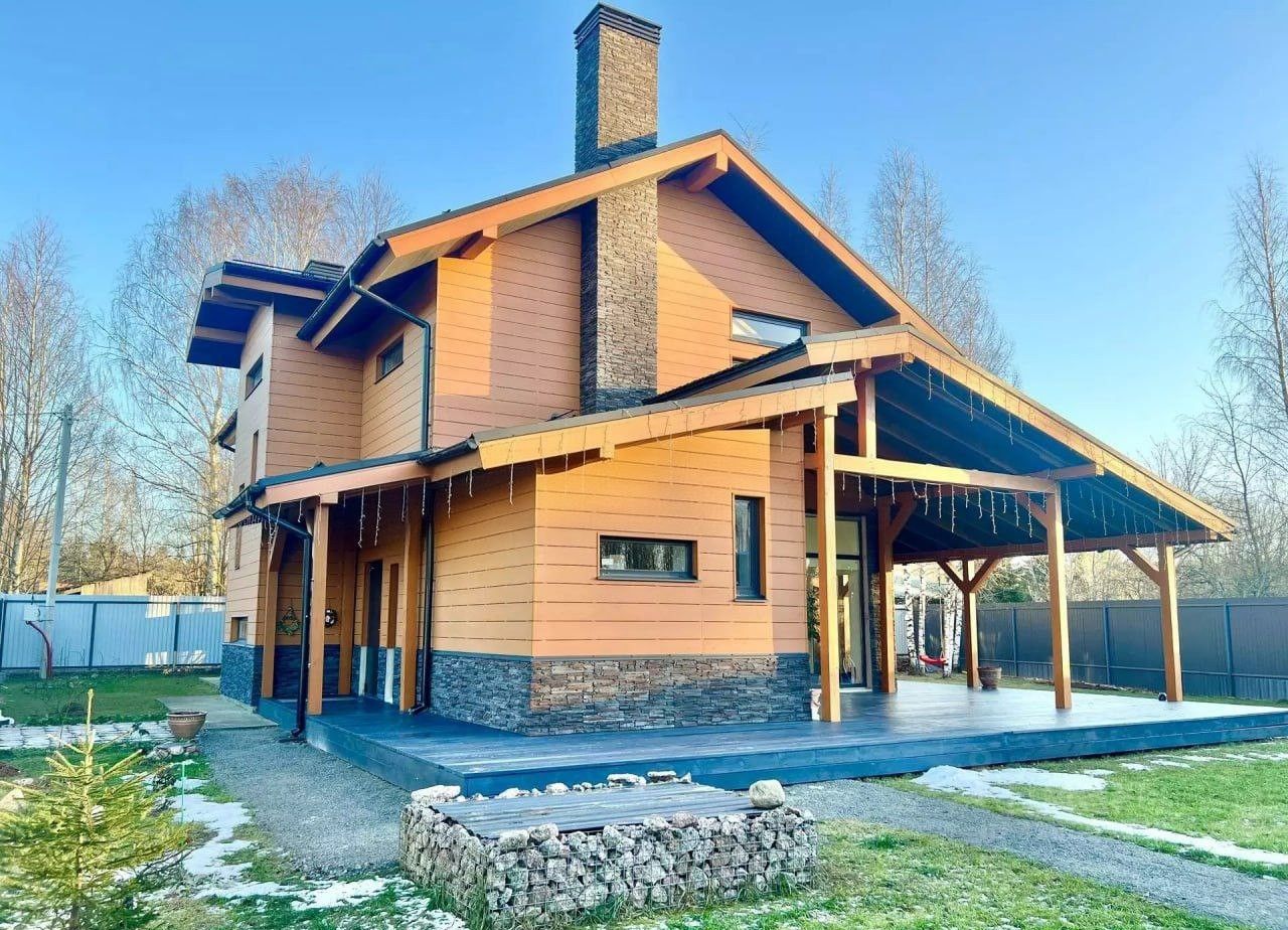 По индивидуальному проекту в стиле шале. Использовались только качественные и долговечные материалы.