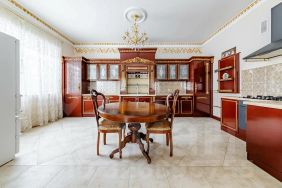 Просторный участок с плодовыми деревьями, зоной барбекю, большой лужайкой. К дому пристроены летняя кухня и гараж.