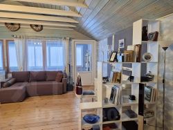 - 2 этаж: застекленная терасса - 7 кв. м., зал (зона отдыха + спальная + мастерская );