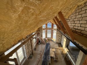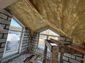 4. Кровля: выполнена по техкарте и из материалов компании Технониколь. Теплоизоляция кровли - ППУ. Метод выполнения - двухкомпонентное напыление (главная особенность этого метода - стопроцентное заполнение теплоизоляцией всех полостей геометрически сложных конструкций кровли).