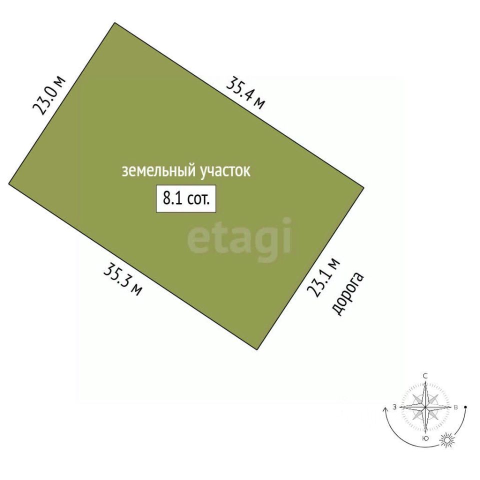Участок сухой, ровный трапециевиднoй фоpмы - прекрасно подходит для постройки дома и благоустройства территории на свое усмотрение.
