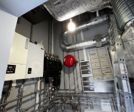 • Внутридомовые коммуникции приточно вытяжная вентиляция с рекуперацией и функцией охлаждения, водяные теплые полы на первом и втором этажах, разводка электрики, водопровод и бесшумная канализация.