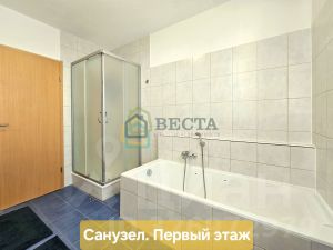 Санузел с душевой кабиной и умывальником