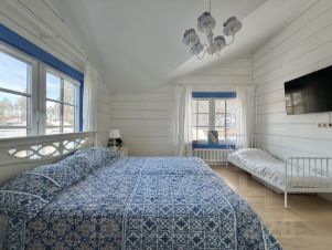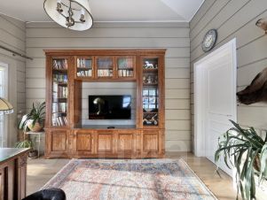 * Второй этаж: коридор, санузел с ванной и видом на природу, 4 спальни с индивидуальным дизайном, две комнаты и кабинет с выходом на террасу, инженерная доска и американская краска Manders в отделке, мебель из США.