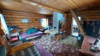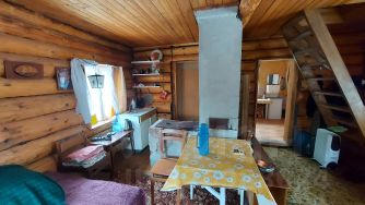 Дом представляет собой бревенчатый сруб обшитый сайдингом,ленточный фундамент, вставлены стекло пакеты, на кухне русская печь для приготовления еды и отопления дома, пс газовая плитка и микроволновая печь. На веранде установлен биотуалет.