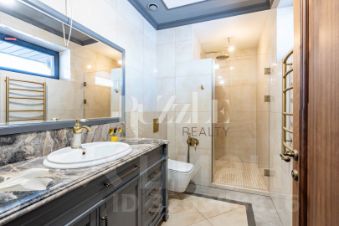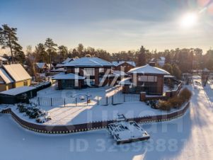 Основной дом -302 кв.м., на 1 этаже- располагается кухня гостиная - 77 кв.м., две гардеробные, спальня и кабинет, кладовая, санузел, котельная, терраса с панорамным остеклением и видом на озеро. На 2 этаже - три спальни, две гардеробные, санузел и постирочная.