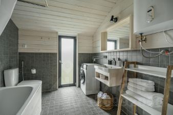 На территории расположена панорамная сауна, которая может использоваться как для личного отдыха, так и как дополнительное преимущество при аренде