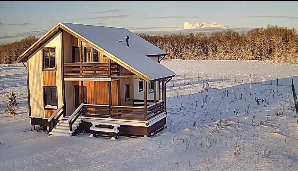 Построен в 2025 году по скандинавской технологии. Основа брус, утеплитель 20 см, по контуру базальтовая плита. Шумоизоляция стен. Фундамент железобетонные сваи.