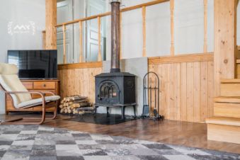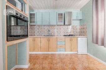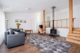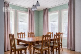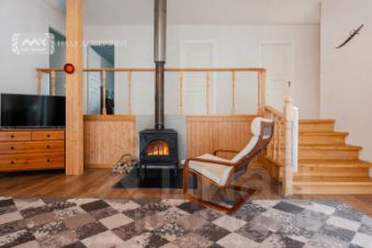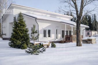 Три спальни, кабинет (или еще одна спальня), два раздельных санузла, гостиная с дровяным камином 27 м², кухня-столовая 18 м² и хоз.блок. Три входа. Главный вход с террасой 10,5 м²., где можно посидеть и отдохнуть. Финская сауна в доме на дровах. Высокие потолки до 4 метров.