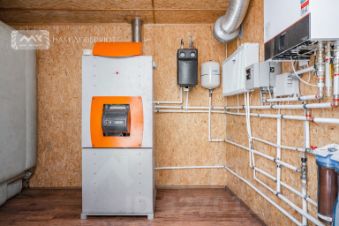 Круглогодичное отопление на сжиженном газе: подземный газгольдер 5 м, немецкий котёл Висман. Регулеровка отопления в доме и контроль горячей воды осуществляется при помощи программы в мобильном телефоне. Обогрев дома осуществляется за счет теплых полов. Дублирующая система на дизтопливе Вольф — никаких простоев зимой. Станция биоочистки "Астра-5", два колодца, электричество 5 квт.