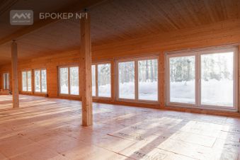 1. Жилой дом: 250 кв. м с панорамным остеклением. Премиальный материал — брус 300 мм обеспечивает высокую теплоэффективность. Без внутренней отделки (возможность реализации авторского дизайн-проекта).