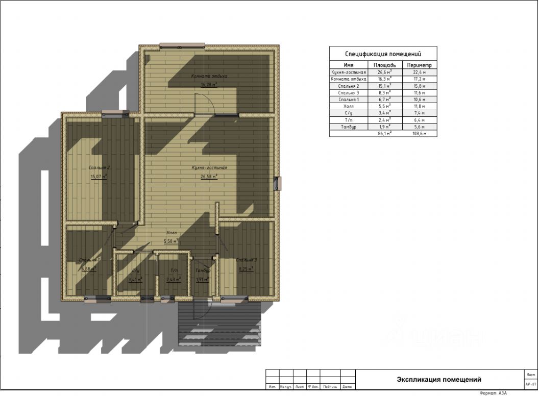 Одноэтажный коттедж площадью 86,1 м² от надёжного застройщика.
