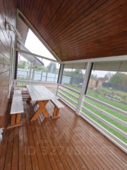 Выход на веранду с кухни-гостиной, веранда закрыта мягкими окнами и сетками от каморов.