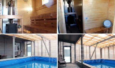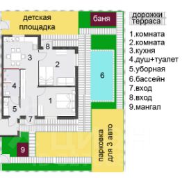 ---Инфраструктура: наличие крытого бассейна, бани, двух мангальных зон, детской площадки, две парковки на три автомобиля и гаража.