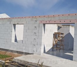 Дом построен с использованием газобетона ЛСР плотность - D400, толщина фасадных стен 400 мм. начало строительства середина марта 2025 г. На сегодняшний день закончено строительство тёплого контура (фундамент, стены и перегородки, ЖБ конструкции, утеплённое перекрытие, кровля, окна, входная дверь), так же сделана отделка фасада и цоколя, смонтирована вентиляция в котельной, санузлах и кухни, ливневая система, установлен септик, пробурена скважина, сделан ввод воды и силового электрокабеля в дом. Закуплено оборудование и материал для котельной и тёплого водяного пола.