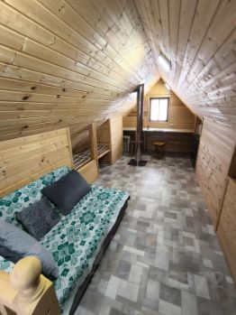Новую баню с жилой комнатой (40,7 м², 2024 г.) — можно использовать как дополнительное жильё или гостевую зону.
