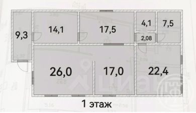 1 этаж - кухня-гостиная с камином. 2- й этаж-3 спальни: 16,5+18,5+12 кв.м и функциональный холл.