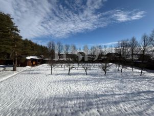 На участке большое количество взрослых деревьев, плодовых деревьев, кустарников и солнечных лужайек с газоном.