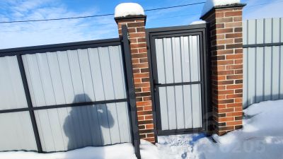 ЗАБОР - Участок огорожен - Фасадная сторона кирпичные столбы с профлистом