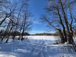 Участок правильной формы (примерно 27*38 м), слегка наклонный, в очень уединенном и солнечном месте, но с соседями, рядом с Макаровским озером. Когда-то это было единое хозяйство, огорожено одним забором. Теперь есть возможность устроить место для спокойного отдыха. Столбы электричества рядом с участком. У соседей электричество подключено.