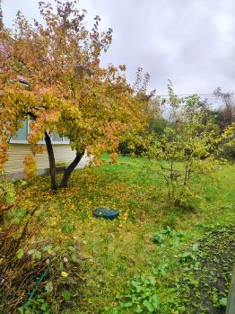 Земельный участок правильной, прямоугольной формы, огорожен забором и имеет заезд с парковкой для нескольких автомобилей. На участке в умеренном количестве растут плодово-ягодные деревья. Межевание участка выполнено.