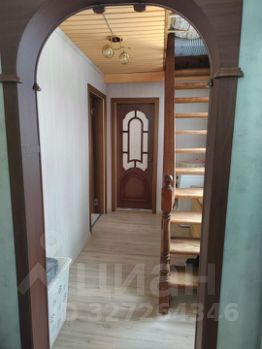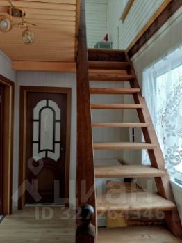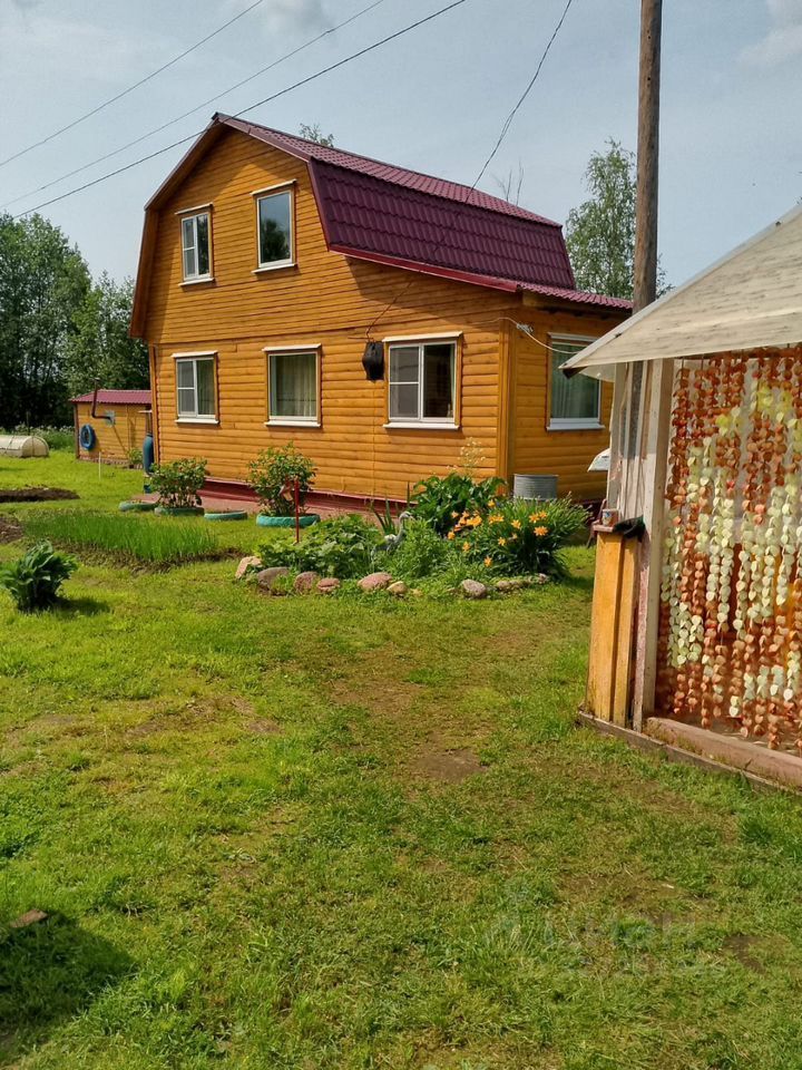 Дом двухэтажный, построен из бруса. Фундамент — сваи.