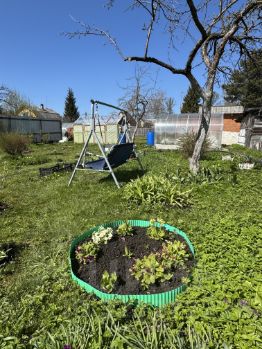 Участок ровный, ухоженный, 6 соток с множеством многолетних цветов (пионы, клематисы, хосты, ирисы, гортензии и др.), плодовых деревьев (яблони, груши, сливы, вишни, черешни) и кустарников (смородина разных видов, жимолость, малина, черноплодная рябина, ирга), а также сирень белая и сиреневая.