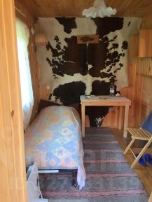 Дом 39 м2 (3 помещения): спальня 10,5 м2, кухня - гостиная 16 м2, летняя комната (без отопления) 12,5 м2, открытая веранда 6,5 м2. Второй этаж 12 м2 не оборудован, можно использовать как дополнительное помещение для хранения (есть лестница из летней комнаты). Все помещения внутри дома обшиты вагонкой. Окна в кухне-гостиной и в спальне - двойные стеклопакеты. Крыша из металлочерепицы.