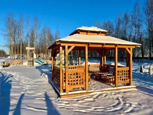 Посёлок новый, комфорт-класса, активно застраивается современными достойными домами. Асфальтные дороги в посёлке, наружное освещение, закрытый периметр с охраной на въезде - обеспечат ваш комфорт и безопасность. Построены детская площадка с беседкой, в планах спортивные площадки и прогулочные зоны. Подъезд к посёлку сейчас - грунтовая дорога, но в планах администрации на 2026 год - положить асфальт.