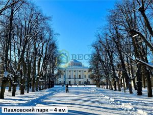 До дворцов и парков г. Пушкина и г. Павловска всего 5 минут на автомобиле или несколько остановок на автобусе.
