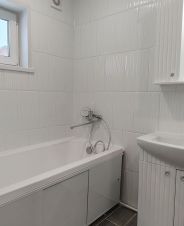 - В санузле 1 этажа разведена сантехника под ключ (установлены: ванна, унитаз, тумба с раковиной, зеркало, водонагреватель), полипропиленовые трубы, теплый пол.