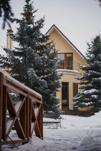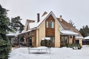 • Основной двухэтажный дом 248,7м2 с просторной кухней-гостиной около 70 м2 и выходом на террасу около 20м2 (в площадь дома не входит). На первом этаже постирочная, санузел, душевая и сауна с зоной отдыха. На втором этаже 5 спален, санузел, просторная ванная с мансардным окном. Две спальни объединены общим балконом. Дом укомплектован всей необходимой бытовой техникой премиальных брендов.