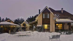 • На участке расположена баня 80м2 с парилкой, комнатой отдыха, двумя гостевыми спальнями на втором этаже, в одной из них выход на балкон.