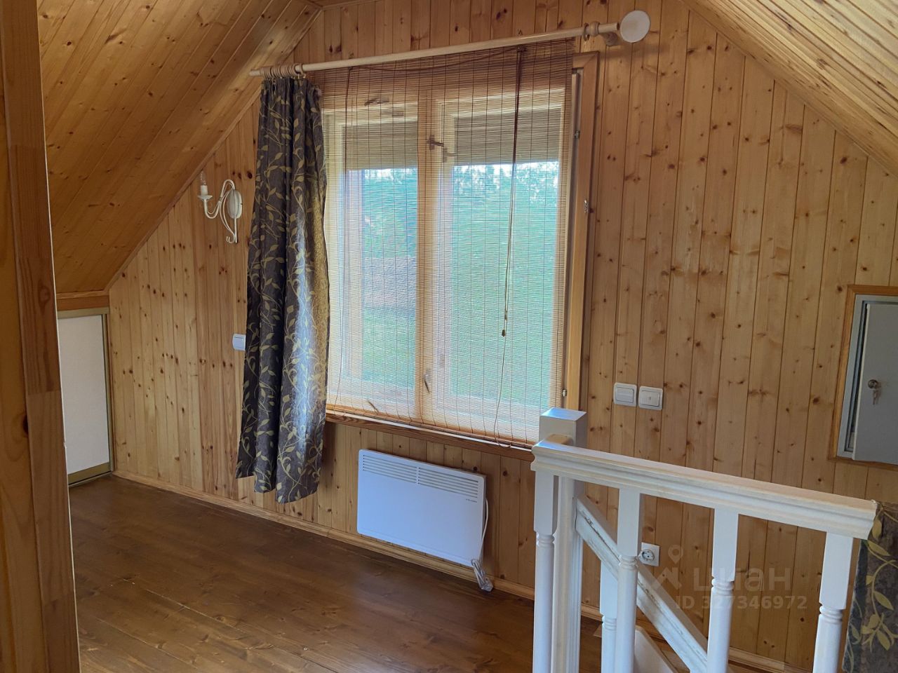 На втором этаже мансардная комната.