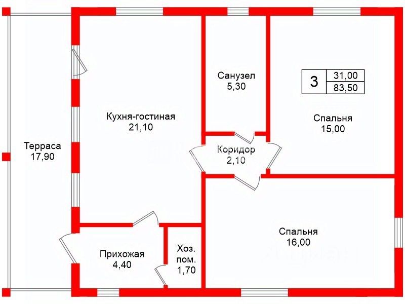 С панорамными окнами вид на террасу. Планировка помещения подходит под расположение кухонного гарнитура, камина,TV, большого стола, мебели.