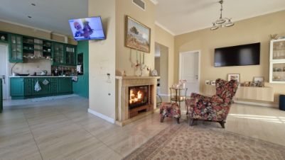 Детская игровая площадка, зона отдыха с ротанговой мебелью, мангал и тандыр . Теплый гараж с автоматическими воротами. Видеонаблюдение по периметру дома. Сигнализация.