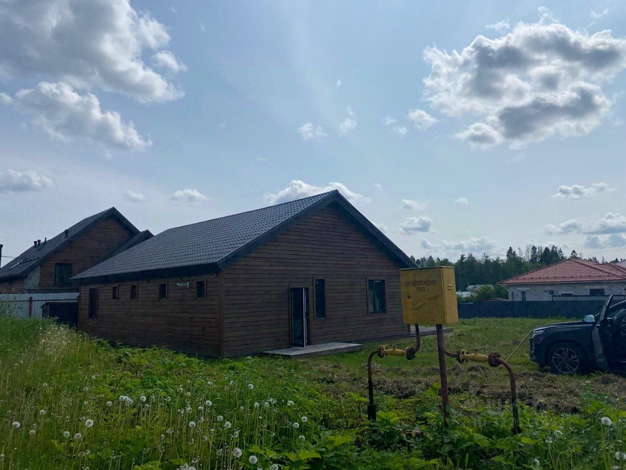 Продается ваш новый уютный Коттедж для постоянного проживания. земельный участок Земельный участок находится в СНТ Ягодка, прямо на краю Сертолово, мкр Черная речка, 9,95 соток, засеян газон, все аккуратно. Участок отсыпан на 1,5-2 метра вверх, выше всех! Заезд с хорошей каменистой дороги, в 150 метрах от асфальтированной дороги. Все удобства проживания в пешеходной доступности: магазины, в том числе сетевые (Пятерочка), детский сад, общеобразовательная школа, парки, ухоженные, оборудованные, где проходят концерты, празднования Нового года с елкой и другие гулянья, рестораны, конные клубы, все либо пешком, или 5 мин на авто. Очень удобное место для постоянного проживания, в том числе с детьми! Транспорт хорошо организован по Приозерскому шоссе 10 км от города. Много маршруток. До Сертолово 10 мин транспортом, где МФЦ, банки, нотариус, почта и вообще все что нужно для проживания. Въезд в СНТ осуществляется через шлагбаум, по звонку, чужих нет. В 15 минутах расположены шикарные озера для купания и рыбалки, песчаные пляжи и все в сосновом лесу. Место славиться своим воздухом, очень полезно для сердечников и для разгрузки от городской суеты. Жилой дом: Одноэтажный, 128,2 Кв метров, В доме 2-е спальни: 16,5 кв. м и 16,5 кв. м. + личный санузел (Мастре-спальня), большая кухня-столовая-42,3 кв.м.+ кухня 11,9 кв.м. с высокими разноуровневыми потолками и панорамным остеклением. Есть помещение в котором изначально задумана сауна, Отдельно котельня, ванная. Строился по каркасной технологии, утеплен, фасадная отделка из натурального дерева, кровля-железная черепица, фундамент-плита, отопление дома обустроено и под газ и под электричество. Сейчас пока к нашему дому идет согласование по газу, отапливаются электричеством, но под газ все оборудование уже тоже готово. У соседей газ подключен. На фото газ в 10 метрах от дома. Установлено в котельне: Бойлер для нагрева и накопления воды, Газовый котел, электрокотел, насосы, в общем все для функционирования уже установлено. По дому: в каждой комнате отопление от теплых полов. Дом подготовлен под чистовую отделку. Электрика вся разведена. Сантехника разведена, Осталось только положить кафель, ламинат, обои, поставить мебель и можно жить. Конструктив полностью готов. Дом строился для себя из дорогих качественных материалов, так же строили и другим соседям дома, так как люди видели качество строения. Продав этот дом мы не уезжаем, остаемся соседями, так что за качество не стыдно. Всегда можем подсказать по ремонту и обустройству дома. Для желающих иметь 3 комнаты-сейчас можно сделать на месте кухни-3-ю комнату, а кухонную зону перенести в столовую 42 метра, тогда будет полноценные 3 комнаты и одна комната с выходом на терассу. Дом построен как одноэтажный, но есть выход на чердак, там очень много места, при желании можно обустроить дополнительную гостевую спальню или место хранения. Электричество заведено -15 кВт, Водоснабжение - Центральное снабжение. Канализация: Центральное Отопление: (газовы