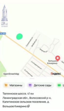 Участок сухой и ровный,до основной дороги 100м., подъезд осуществляется по небольшой улице. В поселке дороги отсыпаны асфальтовой крошкой. Электричество:стоит столб у участка. Собственник заключает договор электроснабжения напрямую с Ленэнерго, заявка подаётся через сайт по ЕГРН и паспорту. Выделяемая мощность до 30 кВт.
