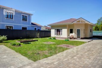 На участке 16,31 сотки выполнен ландшафтный дизайн; ухоженные газоны, вымощенный двор, где можно поставить 10 машин, внутри периметра забора высажены туи.