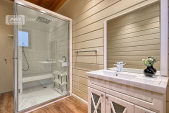 В Гостевой дом входит: кухня- гостиная, спальня с гардеробной, ванная с душевой кабиной.