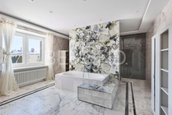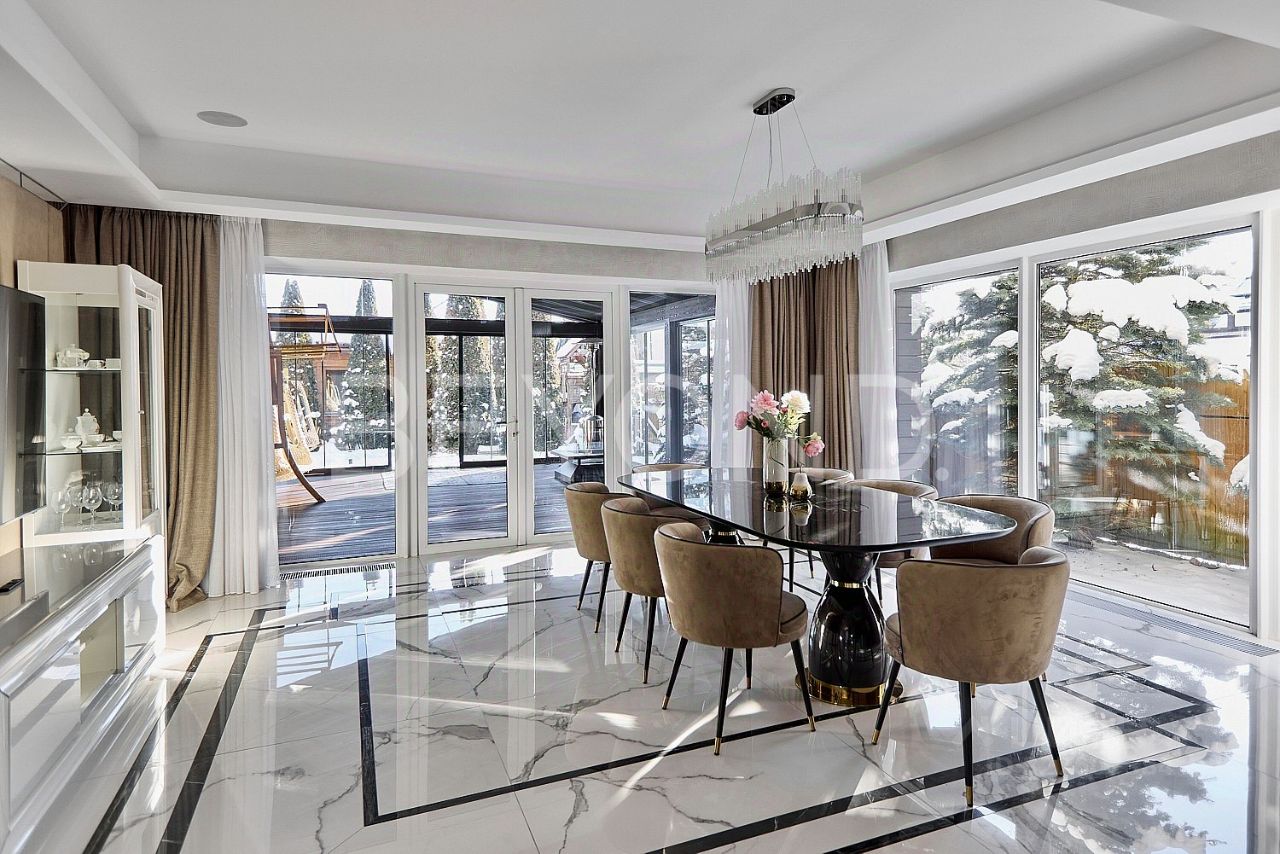 Предлагается к покупке трехэтажный дом 594,7 кв. м, с террасой 40 кв. м с панорамным остеклением, гаражом на три а/м и банным комплексом. Элегантный объект со стилистикой Ар-деко: много блеска, полутона природных красок, четкая геометрия каждого помещения. Баланс между металлом, деревом, камнем и стеклом. Место, где много света и воздуха.