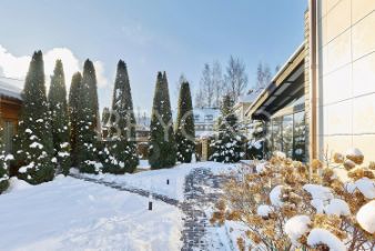 Система кондиционирования и приточно-вытяжная вентиляция. Два водяных контура: первый отапливает дом, второй зону въезда. Отопление газовое.
