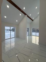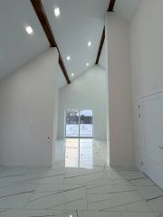 ж/б плита Н-300,стены газобетон с утеплением снаружи Н-50,внутренние перегородки газобетон,стены гипсокартон 15мм, влагостойкий,высококачественная шпаклевка стен,покраска стен, краской Tikkurila Joker,сатиновые натяжные потолки (матовые),межкомнатные двери высота 2,3 м , металлочерепица Quadro Profi v01 0,45 PE RAL 7024 мокрый асфальт,стропильная система крыши: сухая доска 50/200 с утеплением 250мм,фасады: система кликфальц, планкен лиственница цвет коньяк,терраса 42 м2,двухкамерные энергосберегающие окна премиум-класса,тёплый водяной пол по всей площади дома,электрический котёл Рrоtеrm 12квт.
