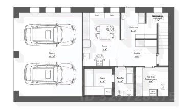 2 этаж: кухня 8,5 кв.м (совмещенная с гостиной) 42,5 кв.м