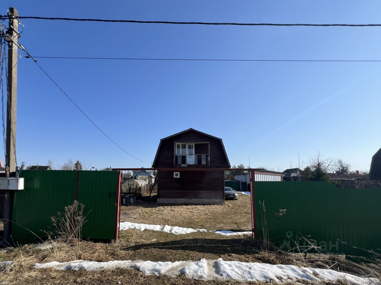 Участок 6 соток: ровный, сухой, ухоженный. По периметру — забор, въезд для машины, шлагбаум для безопасности. Много плодовых деревьев (малина, смородина) — свой урожай всегда под рукой.