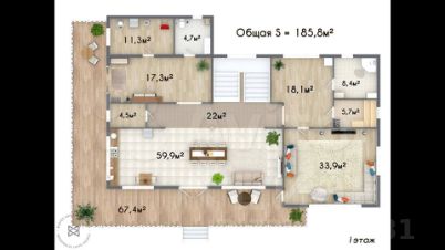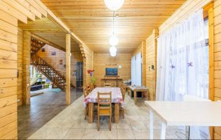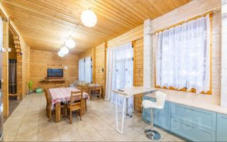 Дом в охраняемом коттеджном поселке с центральным газом, электричеством, центральный водопровод (своя скважина в посёлке) и канализацией. Участок 27 соток и всего в 32 км от города. Панорамные окна из лиственницы, теплые каменные полы, деревянная мебель, спортзал, баня, большая лужайка - теплый и уютный дом готов для круглогодичного проживания!