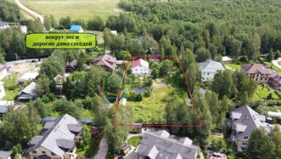 Просторный земельный участок 30 соток, огорожен. На участке расположены дом, беседка, бытовка, гараж, сад с плодовыми деревьями, зона отдыха с прудом и теплицы. На участке и вокруг красивые взрослые хвойные деревья (без болезней и короедов). Место тихое и спокойное. На въезде ворота.