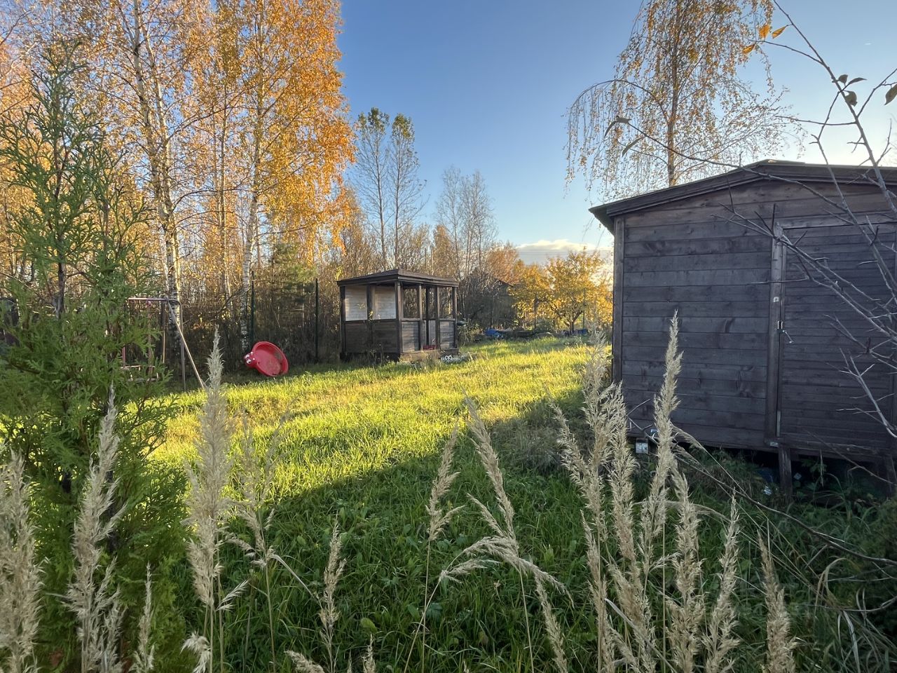 Сам участок правильной формы, частично разработан и огорожен сеткой-рабицей. На территории высажены сосны и туи, есть беседка и бытовка, к которой подключен свет.