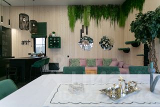 • кухня-гостиная с потолками 4,5 метра — ощущение объёма и лёгкости