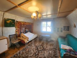 Дом зимний бревенчатый, трехэтажный, утепленный, обшит вагонкой и покрашен; фундамент ленточный, с высоким ж/б цоколем, заглубление на 1,5. м.; крыша ондулин (меняли 5 лет назад); рамы деревянные двойные. В доме удобная планировка: открытое крыльцо; осветленная кухня/веранда 12 кв.м. с выходом на второй этаж; гостиная с установленной кирпичной русской печью и щитом отопления 27 кв.м. На втором этаже: холл с выходом на третий этаж + две спальни 14 кв.м. и 9 кв.м. На третьем этаже большая летняя спальня 21 кв.м. Под всем домом большой подвал.
